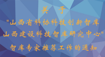关于“山西省科协科技创新智库山西建设科技智库研究中心”智库专家推荐工作的通知